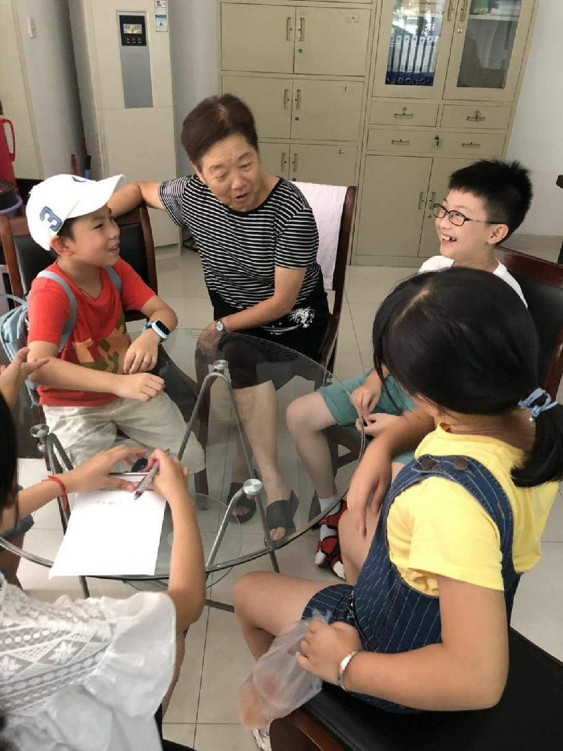 8.7上午9点,东门小学三(1)班雄鹰小队在队长吕忱的带领下来到吉富绅小区业委会。原来今天他们是要访问一位退休的资深老教师,陆杏珍老师。陆老师如今是小区业委会主任。此次寻访活动是为响应学校组织的“童心向党”深化社会主义核心价值观的寻访活动。