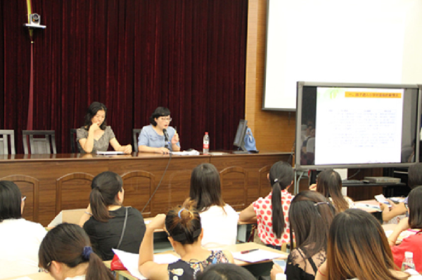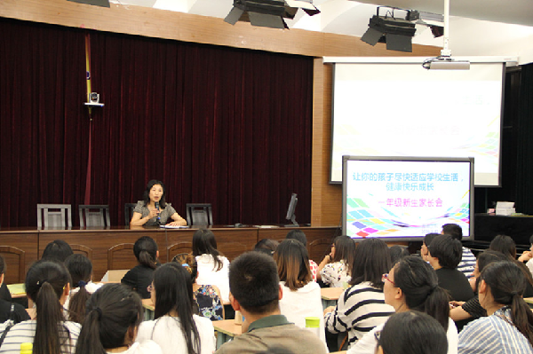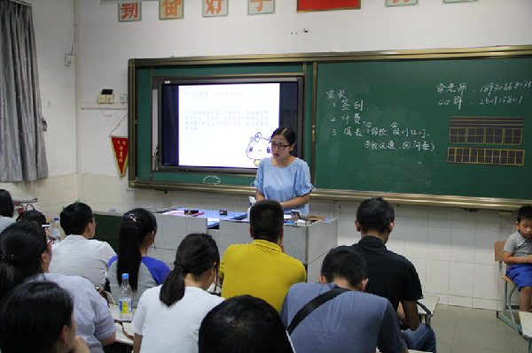 会议分三个议程,先由进修学院的家教专家周丽君老师作题为《千里之行 始于足下》的辅导讲座。她从孩子进入小学所面临的新情况、幼小衔接不适应带来的典型问题 、做好充分准备帮助孩子顺利渡过幼小衔接期三个方面作了生动、实在的入学指导,家长们受益匪浅。接着学校副校长章雪中老师介绍了学校的概况(办学方向、办学特色、办学成效)及一年级师资配备、相关活动安排等方面进行具体的介绍。最后以班级为单位,家长走进孩子的班级。班主任就班级的常规管理、孩子的行为习惯养成等方面进行了交流,任课老师也向家长讲述了自己所教学科的特点、学习要求及家长应配合辅导的问题。